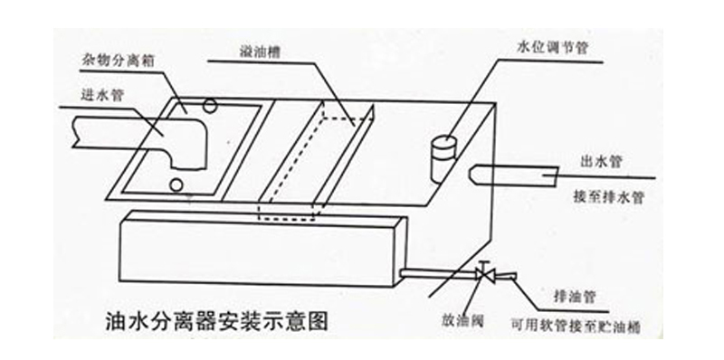 該産(chǎn)品可直接安裝在含有污水流經的通道上,把污水出口對準油水分離器帶格蘭德進口即可,與其他設備(bèi)可用管道連接。