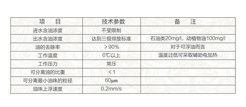 該産(chǎn)品就是使含油污水在重力作用下,借助油水比重差,採(cǎi)用子讓上浮法分離去除廢水中的可浮油與部分細分散油。